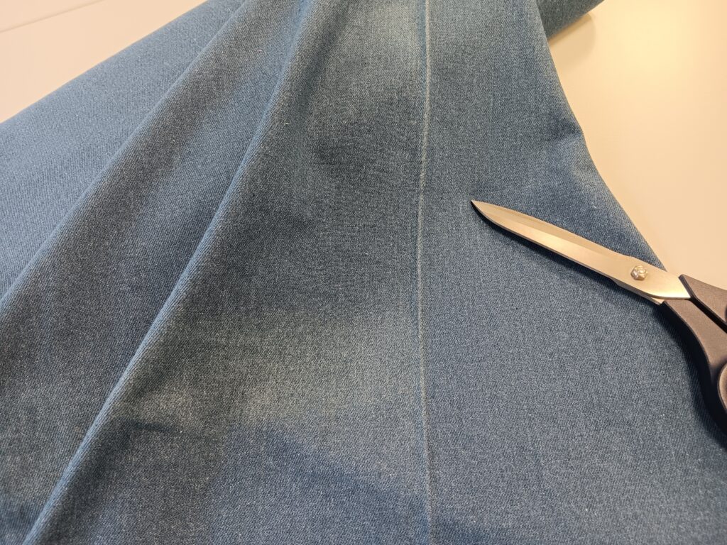 Check, voordat je de stof wast of de patronen op de stof speld, of er geen vlek of fout in de lap stof zit. Let ook altijd op of de stofvouw niet verkleurd is. In dat geval verschuif je de stofvouw door de stof anders te vouwen. Verkleuring op de stofvouw kunnen wij helaas niet voorkomen. Dit gebeurt bij bijna alle stoffen, vooral bij denimstoffen.